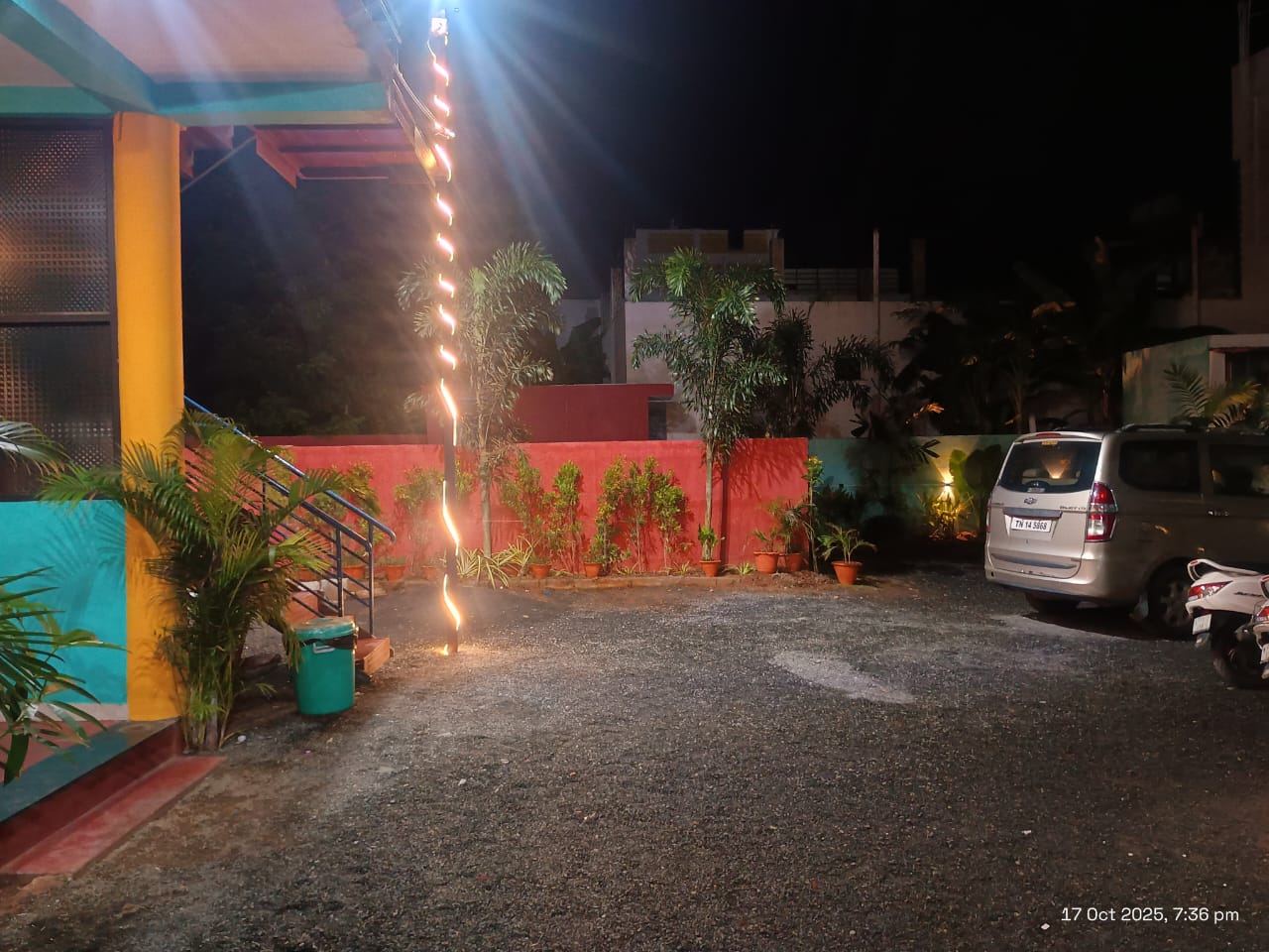 Comfortable Accommodations: Sky Suite Residency in Bommayapalayam offers family rooms with air-conditioning, private bathrooms, and garden views. Each room includes a work desk, free toiletries, shower, TV, and electric kettle.