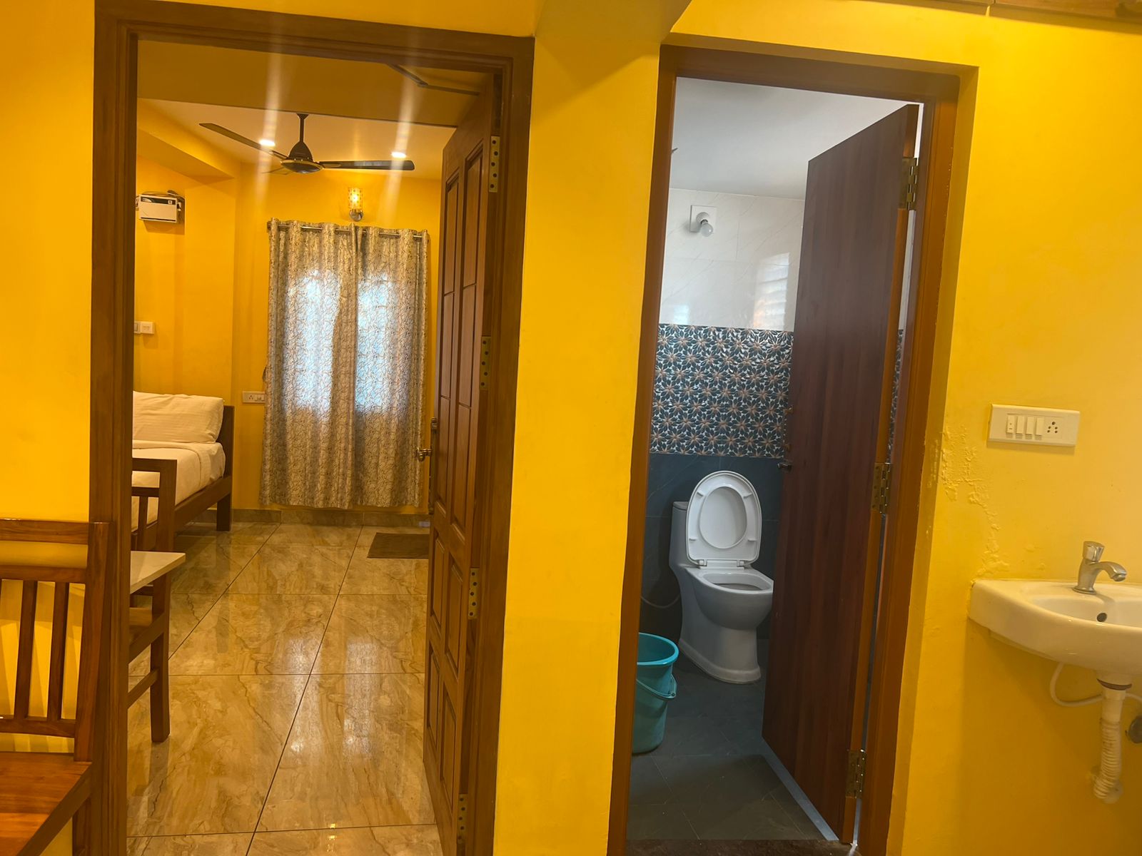 Comfortable Accommodations: White yellow residency in Puducherry offers family rooms with air-conditioning, private bathrooms, and soundproofing. Each room includes a TV, wardrobe, and free toiletries.